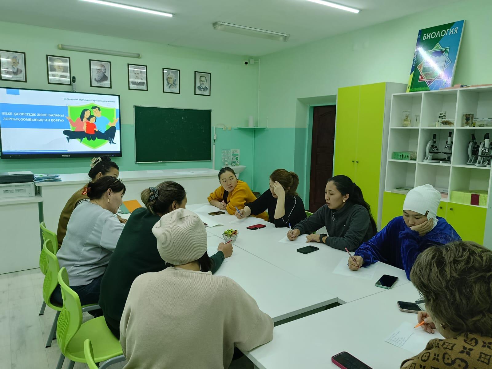 03.12.2025ж күні Жарқын орта мектебінде Ата аналарды педагогикалық қолдау орталығының кезекті сабағы өтті. Сабақтың тақырыбы: "Жеке қауіпсіздік және баланы зорлық зомбылықтан қорғау". Мақсаты ата-аналардың, баланың жеке қауіпсіздігін қамтамасыз ету, оның жеке шекараларын сақтау, зорлық-зомбылық белгілерін дер кезінде тану және дабыл сигналдарына сай әрекет ету бойынша дайындығын қалыптастыру. Сабақ барысында физикалық, психологиялық зорлық зомбылықтардың барлық түрлері айтылып, алдын алу, қорғау шаралары үйретілді. Рефлексия кезінде ата аналар педагогтерге алғыстарын айтып, көп нәрсені үйренгендіктерін белгіледі. Жауаптылар педагог психолог А.Оразбаева, әлеуметтік педагог М.Бекенова