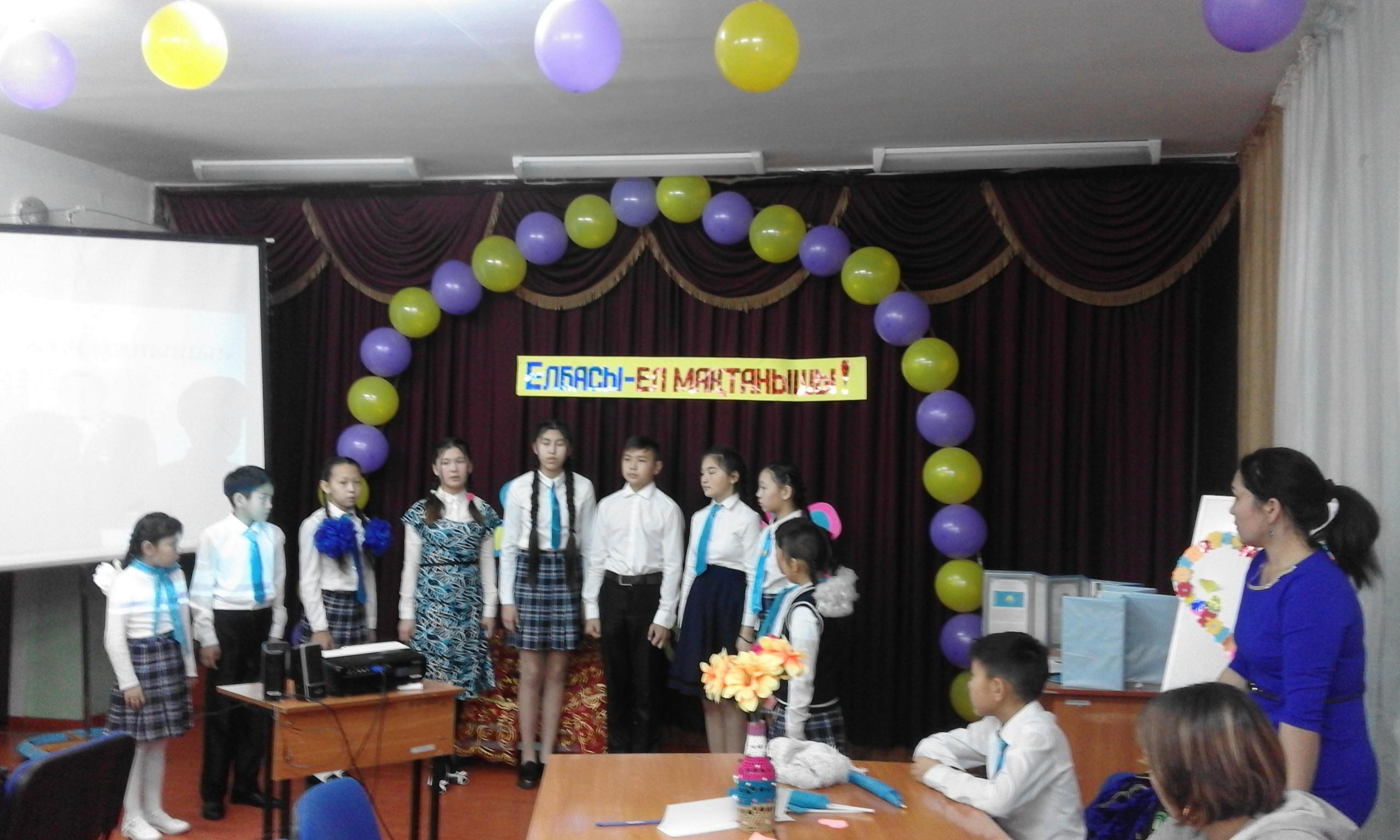 В канун праздника «День Президента», 30 ноября в 9:55 в Жаркынской СОШ был проведен конкурс среди учеников и родителей проекта «Қазақстанды жастар құру керек» на тему «Менің тұңғыш Президентім» Был ороганизован тренинг и показ видео «Елбасы» .
